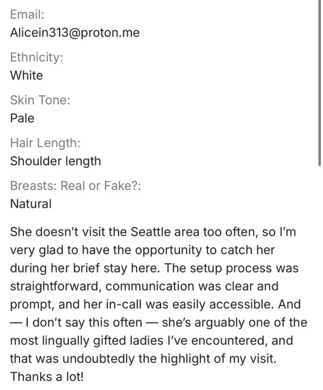 All communication is handled via text/email for discretion and safety.