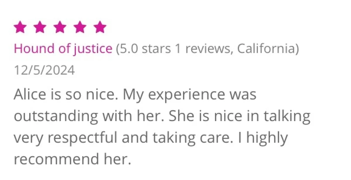 trustworthy. You will be happy. She makes all of the fakers look bad. Alice is